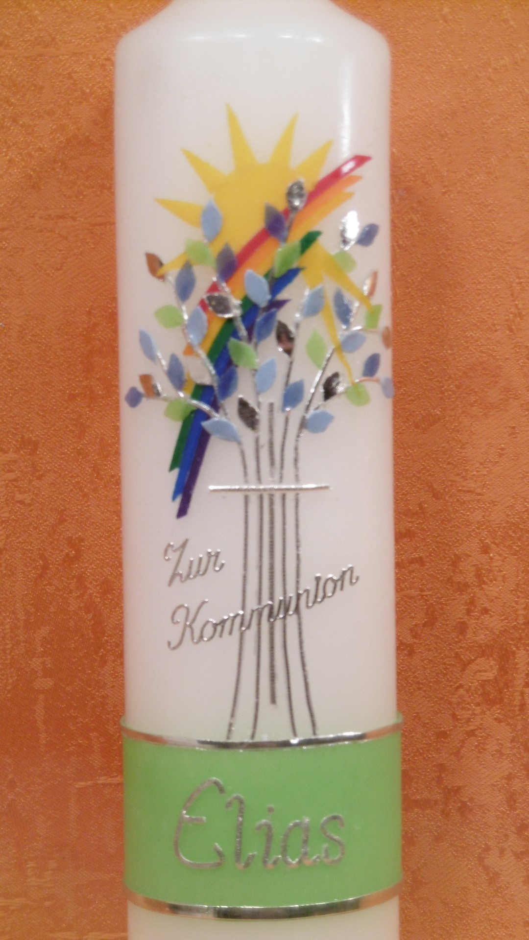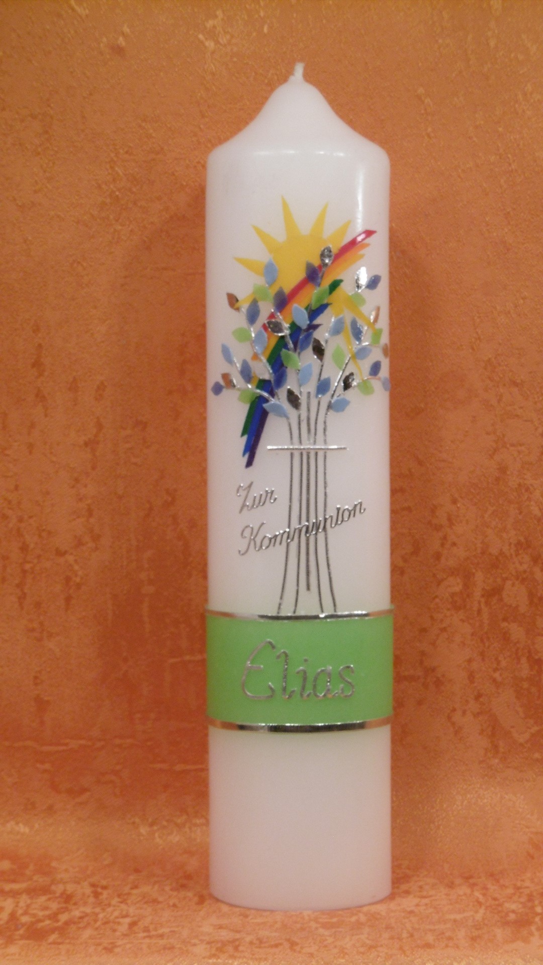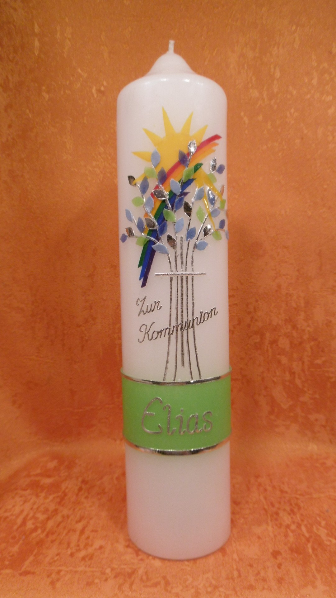 Taufkerze - Kommunionkerze Baum Regenbogen Sonne 1381