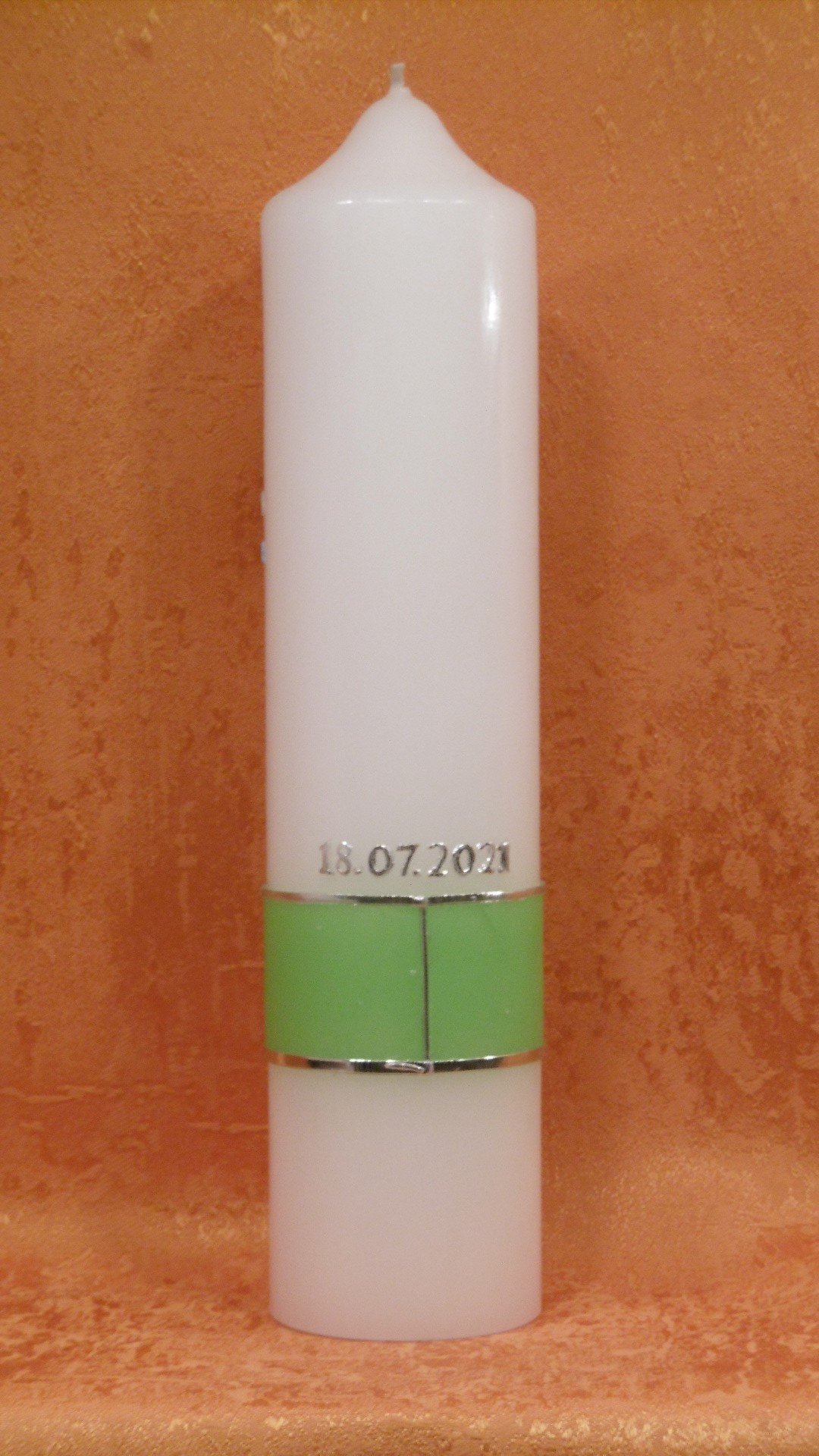 Dieser Lebensbaum mit Regenbogen und Sonne, ist mit viel feiner Handarbeit gestaltet, alles aus Wachs ein buntes Motiv mit Namen und Datum, die Taufkerze wird gerne vom Paten oder der Taufpatin besorgt,