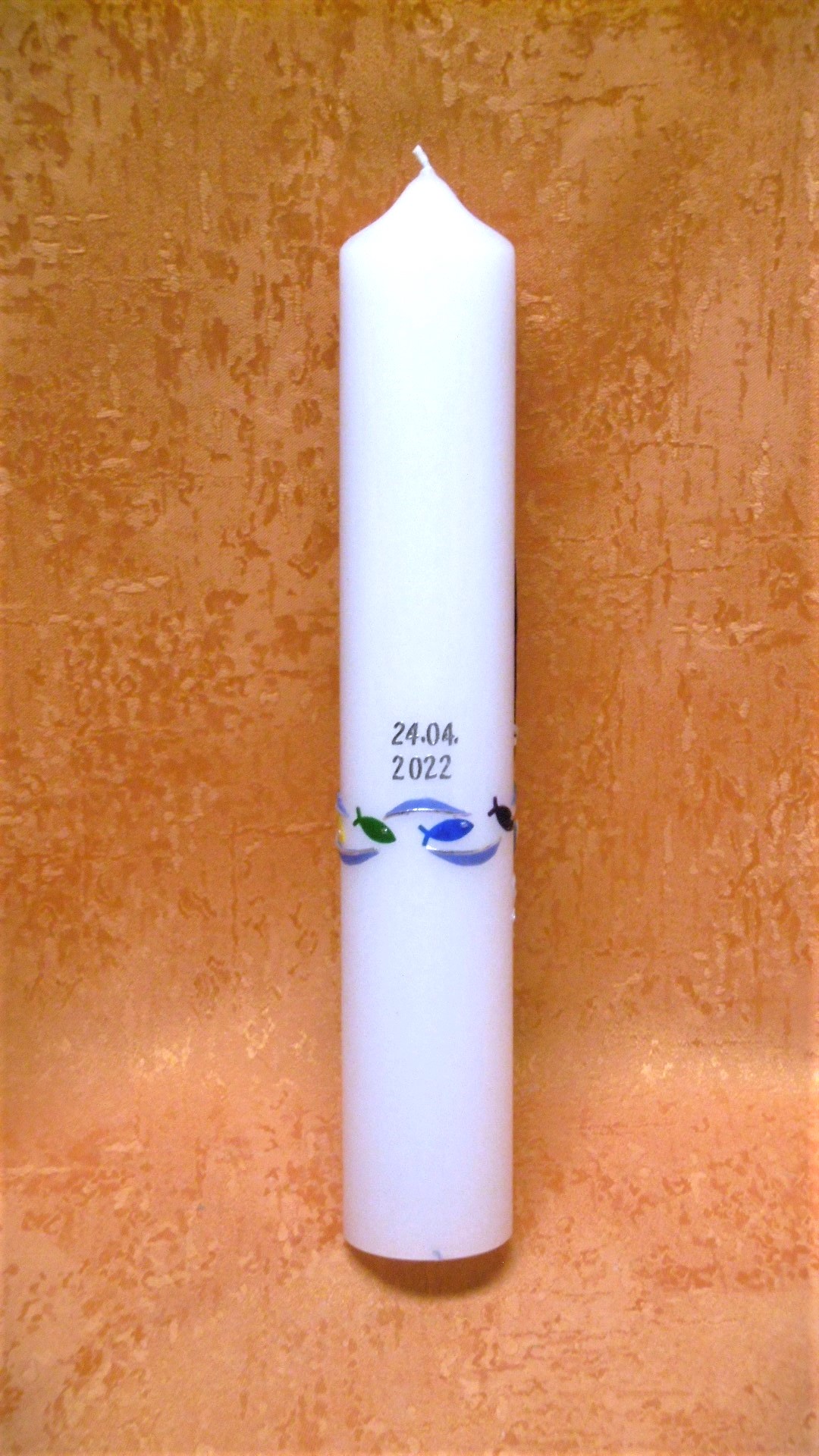 Taufkerze - Kommunionkerze Regenbogen mit Jesus in einen Boot 5203