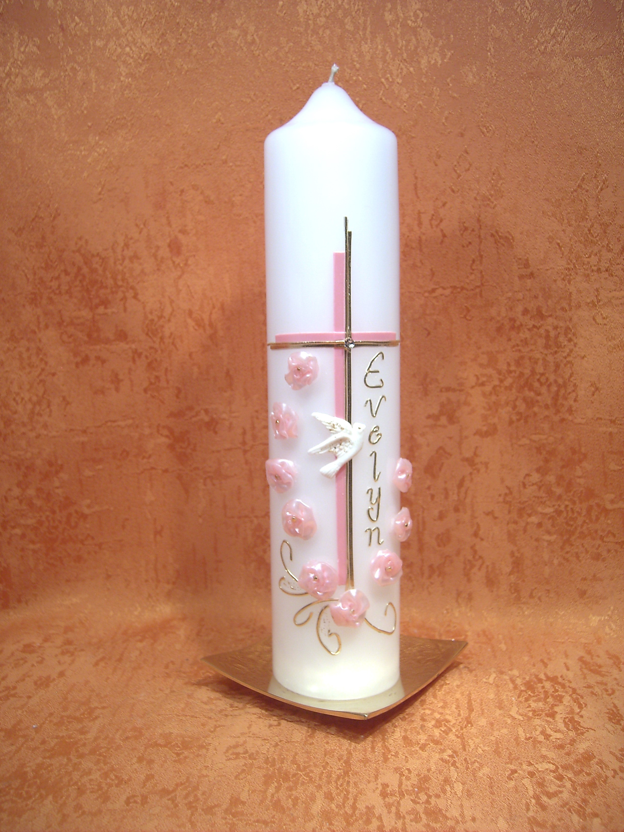 Taufkerze Mädchen rosa Taube Röschen Strasssteine 159