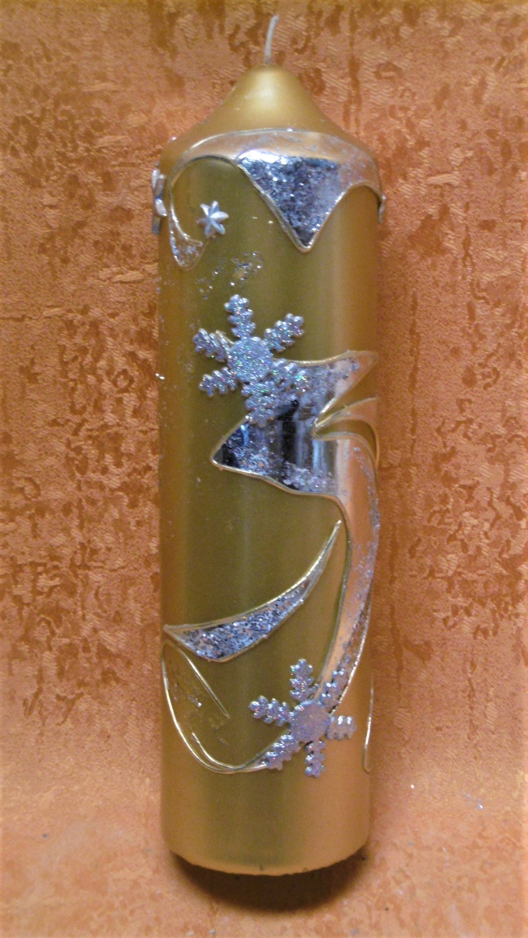 Weihnachtskerze Unikat Gold Silber 8203